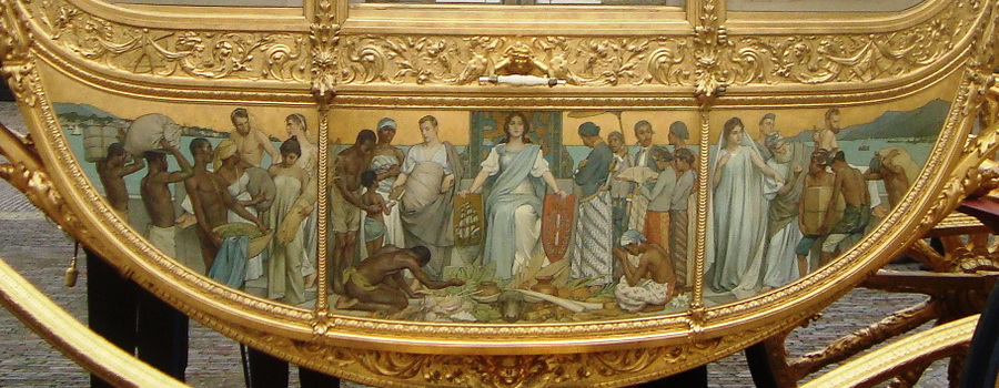 但近年來,車身左側的繪畫卻因涉嫌“種族主義”和“美化殖民”引發了爭議。2011年,荷蘭國會議員哈里•範博梅爾和瑪麗科•彼得斯提議,應把這塊側板換掉,因為它展現了半裸的奴隸被上交給荷蘭王室的畫面。