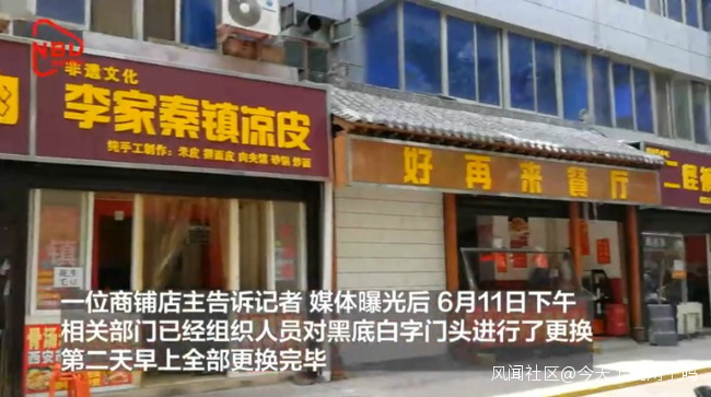 一位商鋪店主告訴《每日經濟新聞》記者,媒體曝光後,6月11日下午,相關部門已經組織人員對黑底白字門頭進行了更換,第二天早上全部更換完畢。