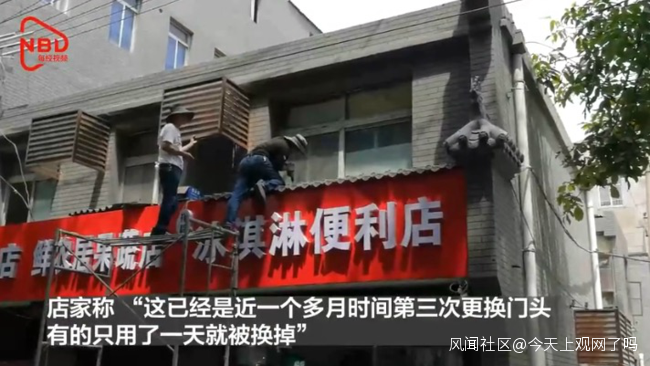 店家稱,“這已經是近一個多月時間第三次更換門頭,有的只用了一天就被換掉。”
