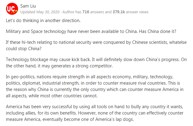 因此,禁止中國使用技術只會讓他們更加堅決地開發屬於自己的技術,這使得中國越來越獨立於美國,這是個壞消息。
