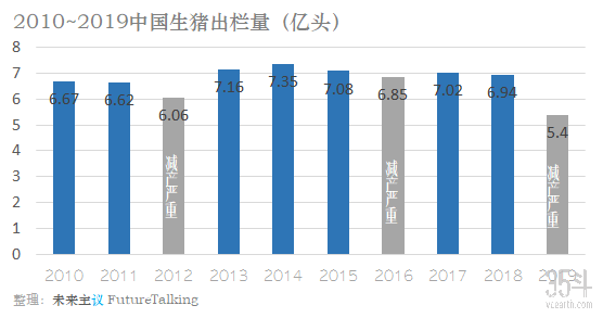 養豬產業體現農產品領域的一定特殊性,產量過剩價格就下降,產量不足價格就上漲。也就是説“多收了三五斗“未必就有更好的經濟回報。受非洲豬瘟影響,2019年國內豬肉產量相比2018年減少超過20%,也是十幾年來產量顛簸幅度最大的一年。供給端大幅萎縮,短期內造成巨大需求缺口無法滿足。這無疑是2019年豬肉價格飛漲的最主要原因。