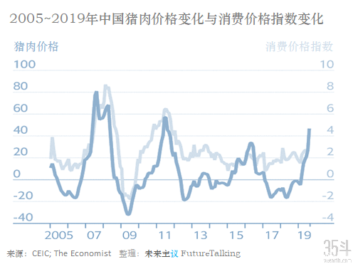 因為產量顛簸,中國的豬肉價格一直處於波動狀態,回顧過去15年的價格走勢,2019 年的高漲屬於波動週期中的合理範圍。
