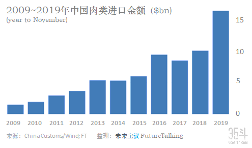 豬肉價格關乎民生,不能允許無限上漲。為控制豬肉價格飛漲,供給端還有別的選擇,通過增加進口豬肉來彌補國內市場需求缺口。中國進口肉類過去十年持續增長,尤其2019年中國放鬆限制,擴大肉類進口,包括從美國、加拿大、英國等國家採購,除了豬肉外也增加了其他肉類進口,也可作為豬肉替代選擇滿足國民需求。上一個豬肉漲價年2016年裏,肉類進口數據也比前一年有大幅度增長。