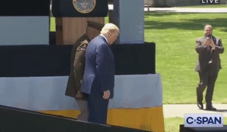 戰鬥力驚人,忘了他是個老人,得服老!川普雙手捧杯喝水,蹣跚步伐走下坡._風聞