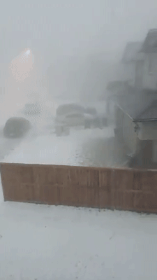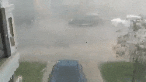 有目擊者説,他們看到巨大的冰雹突然開始降落,他們迅速躲到車裏,誰知車子的玻璃居然被網球大小的冰雹擊碎了!