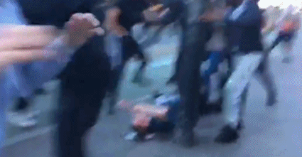 在街道上激進的示威者還和極右分子直接打了起來,有人不慎倒地就被人羣圍毆,一人一腳,很多人是踢完之後就馬上逃走。