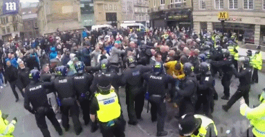 但是示威者和極右分子則不斷攻破警方的防線,期間還不斷向警方投擲硬物。