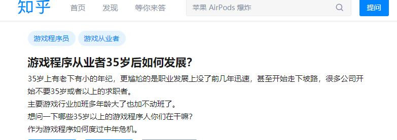 在知乎,就有一位遊戲從業者遭遇了“大齡困境”。面對越發年輕化的行業環境,他對即將到來的中年危機感到恐慌,企圖尋找出路。而該話題也有近3萬人瀏覽,多位同行參與討論並紛紛給出了自己的意見。