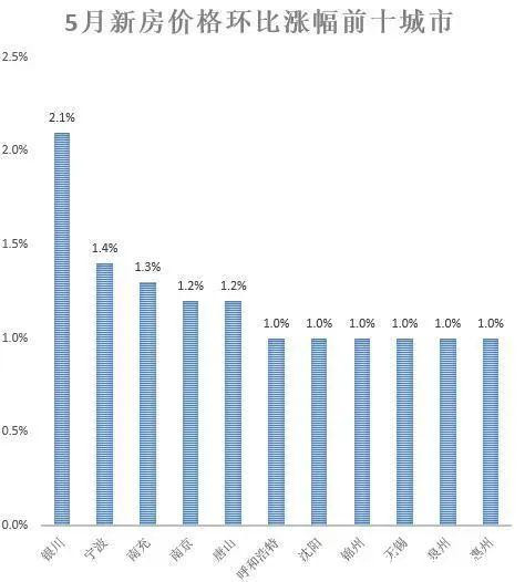 31個二線城市和35個三線城市新房價格分別環比上漲0.6%和0.7%,銀川以2.1%的新房價格漲幅在70個城市中居首,而北京則以1.8%的環比漲幅領跑二手房。