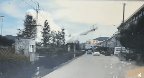 由於高速路附近有居民樓和工廠,房屋損毀嚴重。