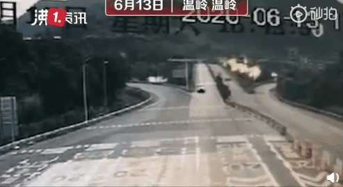從收費站的監控可以看到,爆炸現場地面劇烈晃動,火光沖天。