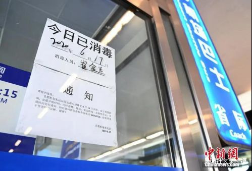 6月17日,北京首都國際機場T2航站樓省際巴士候車點貼出通知顯示,受新冠肺炎疫情影響,前往北京周邊省(自治區)的部分線路已暫停運營。中新社記者 侯宇 攝