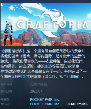 以上文字是Steam遊戲《創世理想鄉(Craftopia)》的原文簡介,中文又名《拯救了海拉魯大陸後來到了星露谷開起了異星工廠同時身負傳火使命又兼職怪物獵人還夢想成為寶可夢訓練大師的我考慮怎樣才能拿到飛行執照同時把火箭送上天》,一款放出消息後被稱為“終極縫合怪”的遊戲。