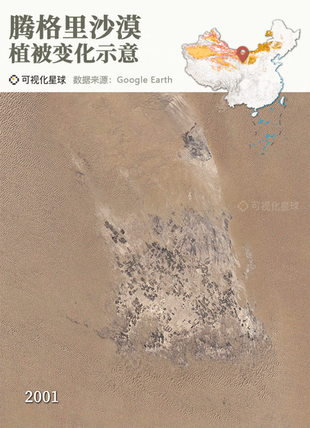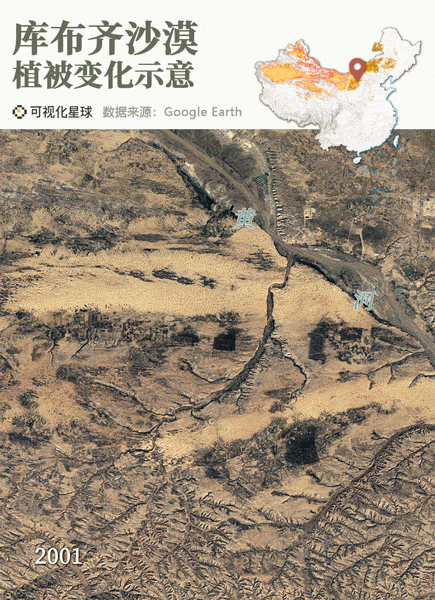 ▽ 庫布齊沙漠植被變化,內蒙古鄂爾多斯市 | 製圖@Lepersil/可視化星球