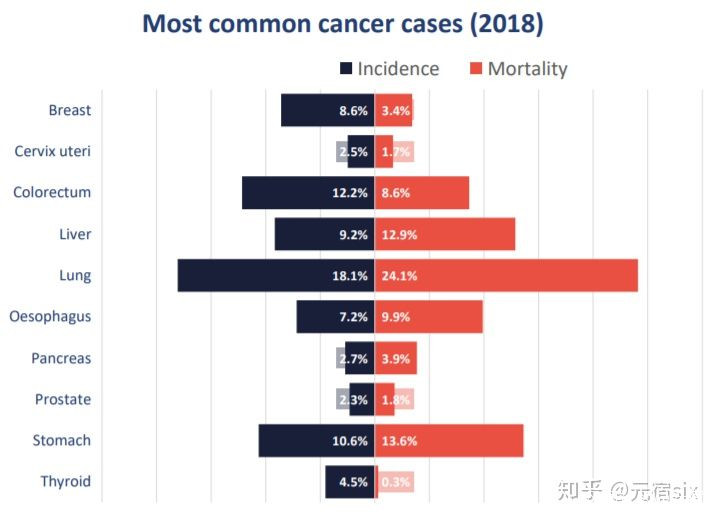 我國發生及死亡前十的癌症如圖[[5]](https://www.zhihu.com/follow)