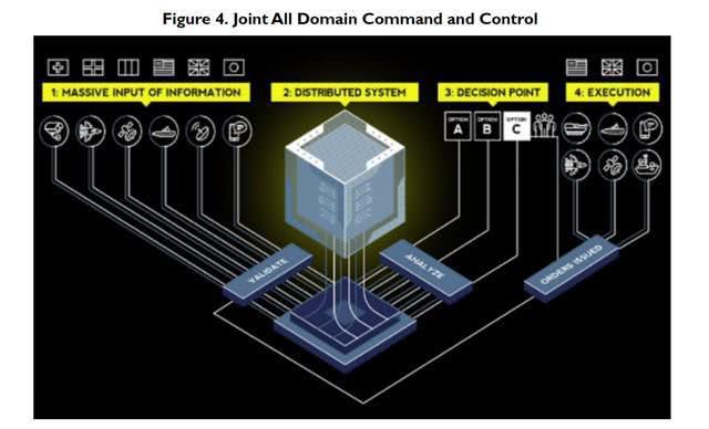 圖從左到右依次是1.大規模情報輸入,2.分佈式系統,3.決策節點,4.執行。美國會對新型情報,監視和偵察體系已經通過多個法案,劃撥了專款,成立了專門的領導小組來推進。