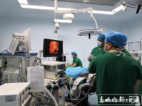 由於肺內異物滯留時間長、取出困難、出血風險大,何連福主任醫師首先詳細評估宋女士肺內異物及異物周圍血管情況後,進行了積極肺部抗感染治療,以減少異物取出時出血風險。