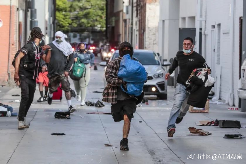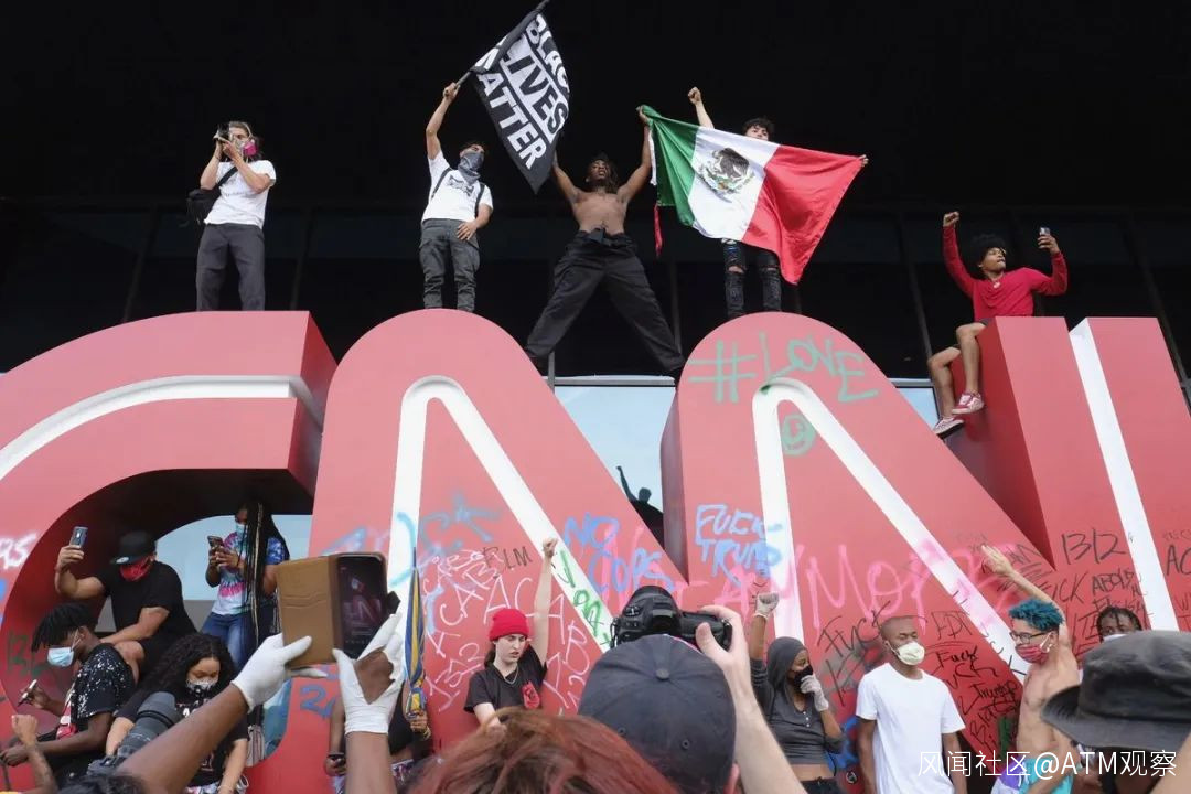 之後的兩週內,全美上下各大城市均出現了不同規模的遊行抗議隊伍。上街的人一多起來,秩序就很難得到維護,加之因疫情期間隔離壓抑很久的的情緒,讓許多城市都出現了騷亂局勢。更有好事者潛入示威隊伍中,讓許多城市中本來和平的遊行運動演變成了打砸搶的騷亂。警察局被焚燬,商店被劫掠,電視台被砸,這種動盪的畫面似乎給人一種重回動盪之年1968的既視感,甚至讓人忘了當前還有仍未散去的新冠疫情籠罩着美國社會。