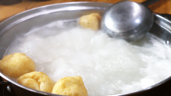 夾一段剛炸好的油條摁進花生湯裏,待油條充分吸收湯汁後,大口咬下,如此吃法,令人直呼痛快。