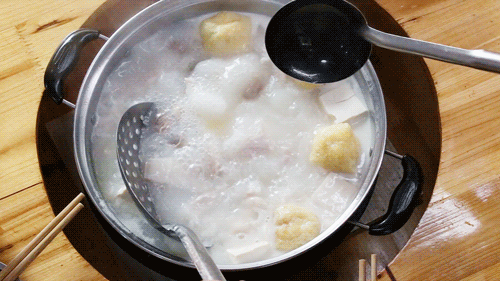 肉吃得差不多,下青菜、豆腐泡,時令的有什麼下什麼,骨湯一燙都鮮嫩,只是別忘了加一勺豬油——