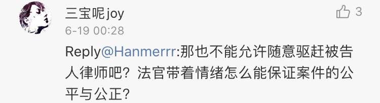 有網友認為審判長不應該在庭審現場帶着情緒工作。
