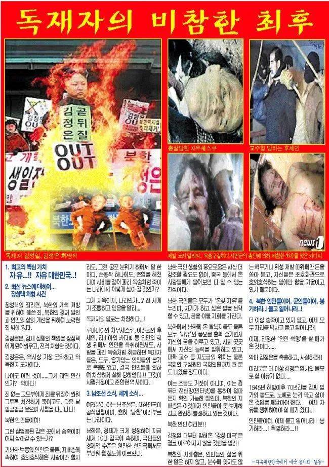 有直接辱罵朝鮮領導人的,也有把薩達姆和卡扎菲照片放上面明裏暗裏威脅的。