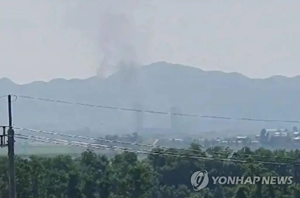 6月16日下午,隨着幾聲巨響,朝鮮開城工業區的上方黑煙滾滾。