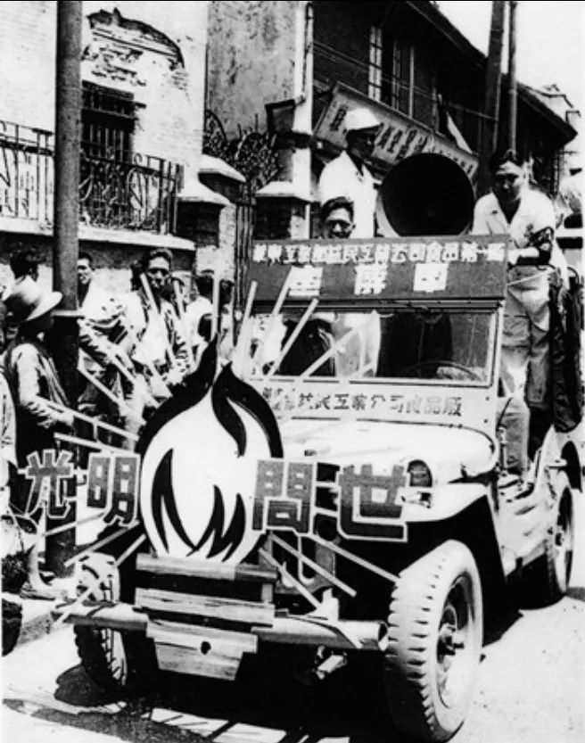 光明牌宣傳車沿街送出免費冰淇淋,1951年