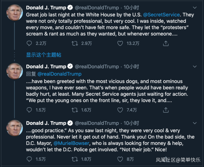 比如前幾天,美國總統特朗普在針對美國國內的人民羣眾時就説過:”用最兇狠的狗和武器對付示威者“。