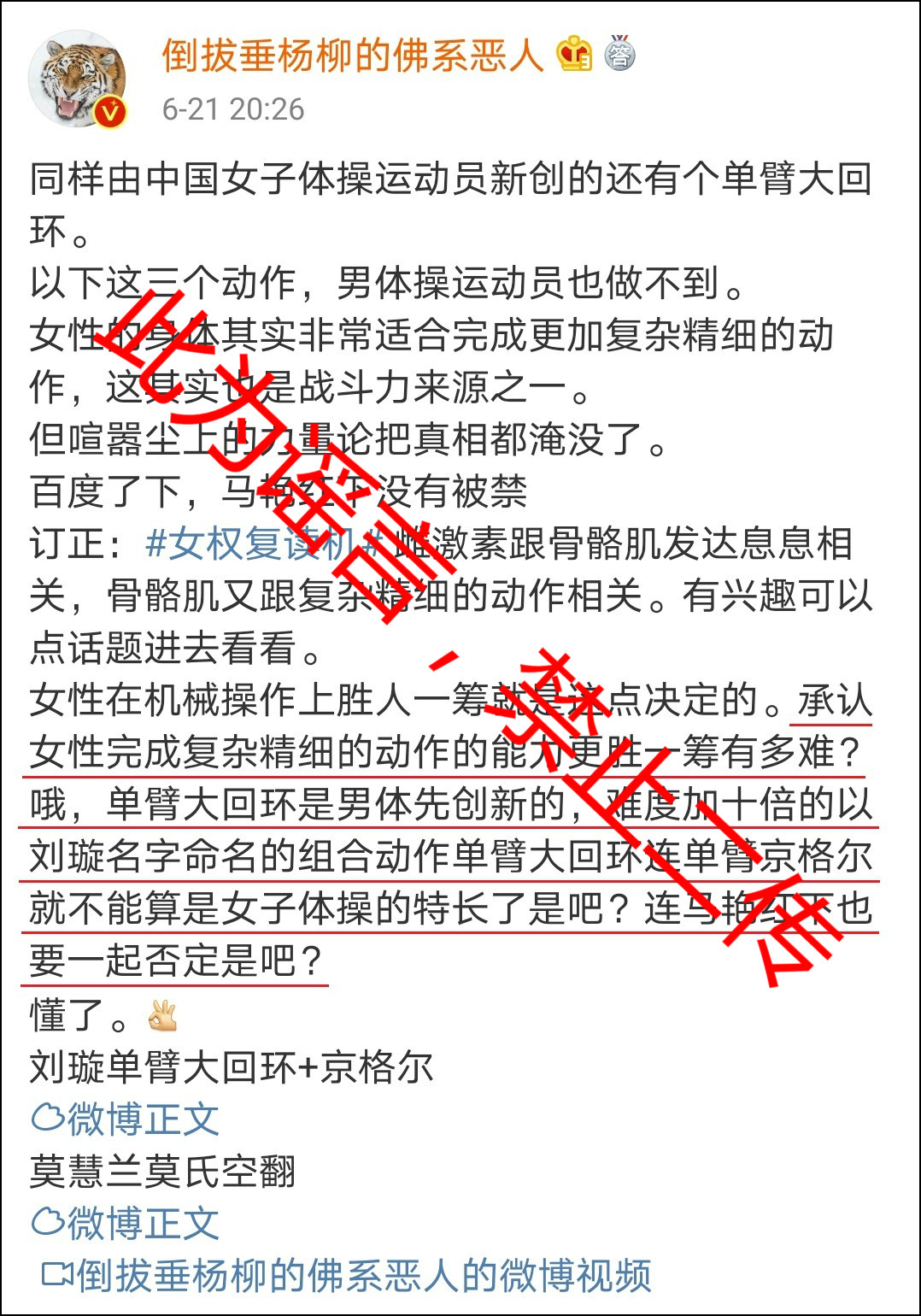 現在又輪到體操運動,“女拳”分子還繼續説着外行的話,也只是再次引人哂笑罷了。只能提醒廣大網友:如今的社交網絡上,有些人為了名利進行炒作,已經到了極端和不可理喻的地步,這樣的現象應該予以警惕。