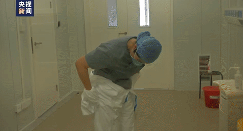 在隔離病區工作時,很多工作人員都在使用冰袋降温。冰袋不夠用了,大家還會用一次性手套裝滿水來自制冰袋。等大家脱下防護服時,身上幾乎都濕透了。