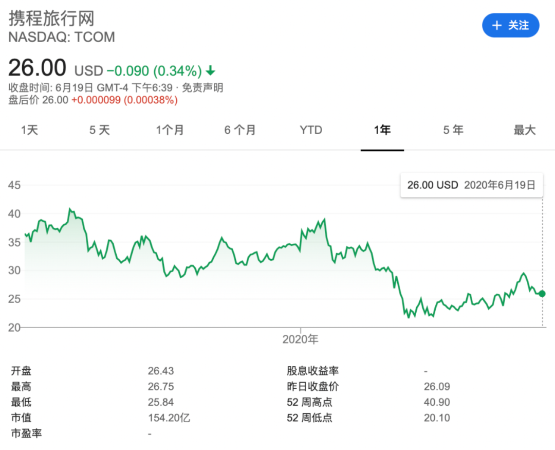 這一波疫情讓攜程這類企業遭受到了重挫。攜程股價在疫情以來幾乎跌到了最低點。