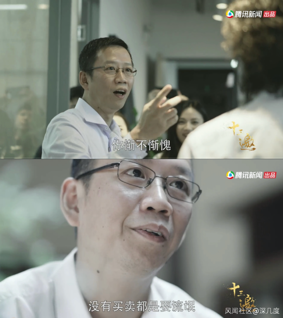 《十三邀》第四季第一集中,吳曉波帶着許知遠去走訪中小企業。他開玩笑嘲諷這個面對錢有種罪惡感的心靈潔癖者“人家粉絲比你多,你慚不慚愧”。他建議他辦會員,讓思想收費,因為“沒有買賣就耍流氓”。