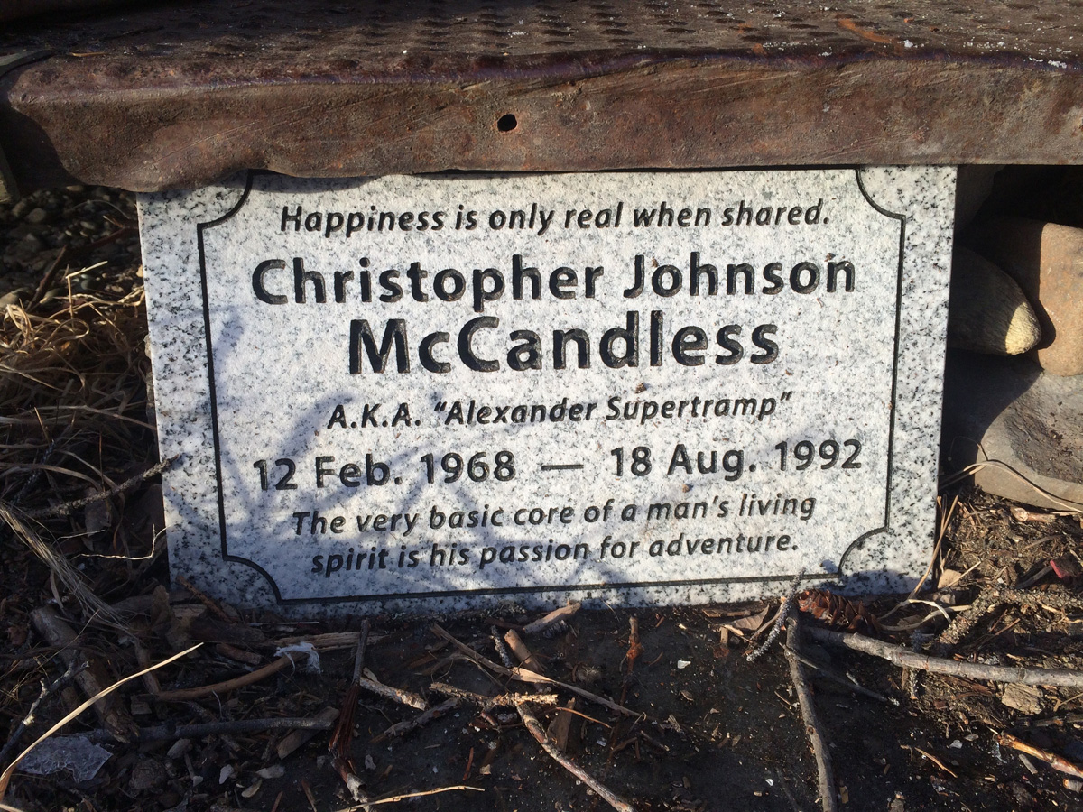 當年把舊校車留在這裏的人可能都不在了,Chris也根本沒有想到過他的故事會成為傳奇和激勵,他只是要拋棄塵世,尋找自我。他是一個理想主義者,有點天真,對於野外生存其實一點都不懂,全憑一腔激情。這當然是好聽的説法,難聽點的説法是,他其實和吸毒的人沒有太大的不同,執意挑戰生死是因為“尋常生活”已經不夠刺激了,只有不斷加強的刺激、不斷貼近生死挑戰,才能“找到自我”。留下激勵和傳奇可能是從來沒有想過的事情。