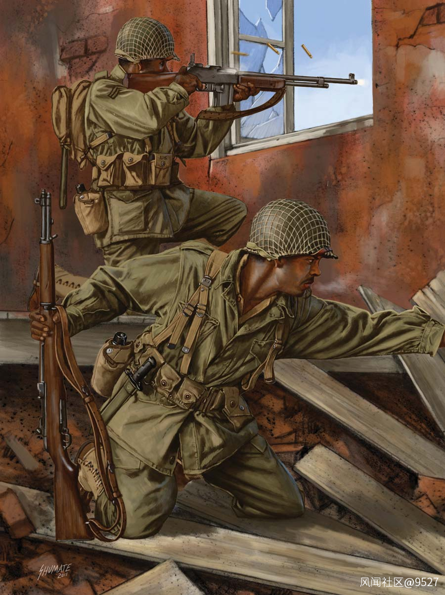 第13步兵團的部隊在諾曼底的La Hayedu-Puits作戰。由於自動武器比德國同行少,諾曼底的步兵班很重視他們的BAR小組。
