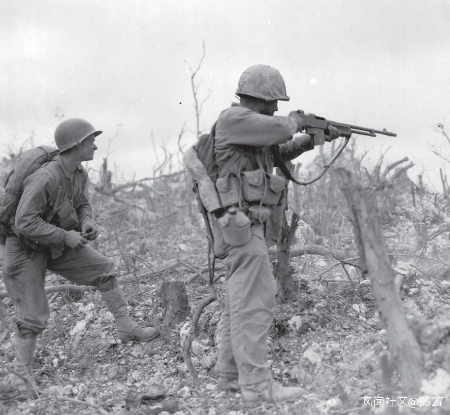 BAR在歐洲的地面戰爭中發揮了至關重要的作用,但可以説在太平洋戰場上發揮了更重要的作用。與德國的同類部隊一樣,在太平洋戰爭爆發時,日本步槍排的基礎是積極使用自動火力,而不是步槍手。一個步槍排的4個13人小隊中,有3個小隊各裝備一挺輕機槍(實際上被定為 “輕機槍組 “),第4個小隊是手榴彈小隊。他們的輕機槍是彈夾式6.5毫米96式和7.7毫米99式,都是基於捷克式輕機槍設計而來。到1944-45年絕望的島嶼戰役時,海軍陸戰隊的經驗使他們意識到了自動火力的重要性,他們的官方配發的BAR已經增加了三倍。至少在戰爭後期,每個海軍陸戰隊的火力小組都帶着BAR上前線,這一事實讓人瞭解到勃朗寧自動步槍對海軍陸戰隊的重要性,尤其是在各種島嶼戰役中。