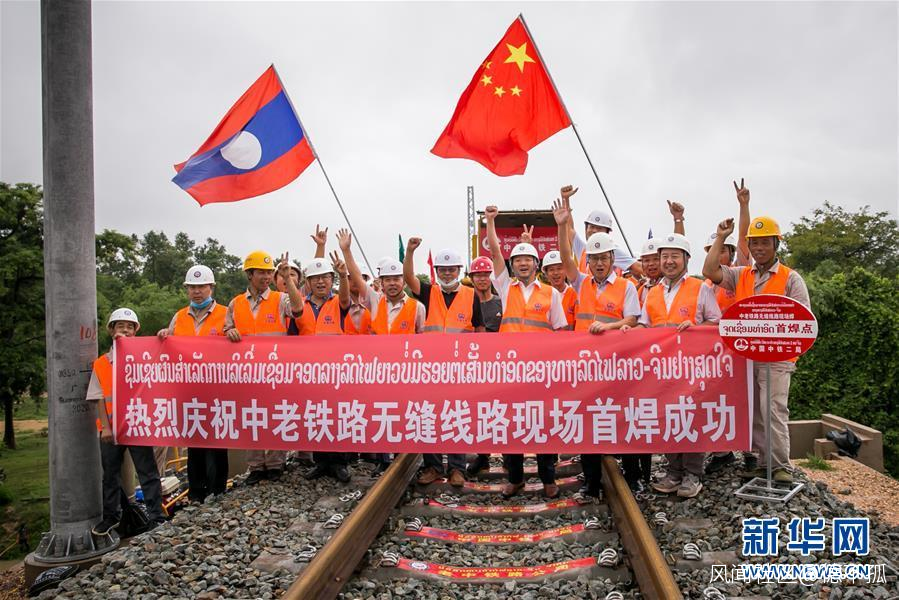 6月18日,中國中鐵二局在老撾首都萬象北郊楠洪河橋頭成功實現第一對長軌焊接,標誌着中老鐵路無縫線路現場焊接正式拉開序幕。 (新華社,凱喬攝)
