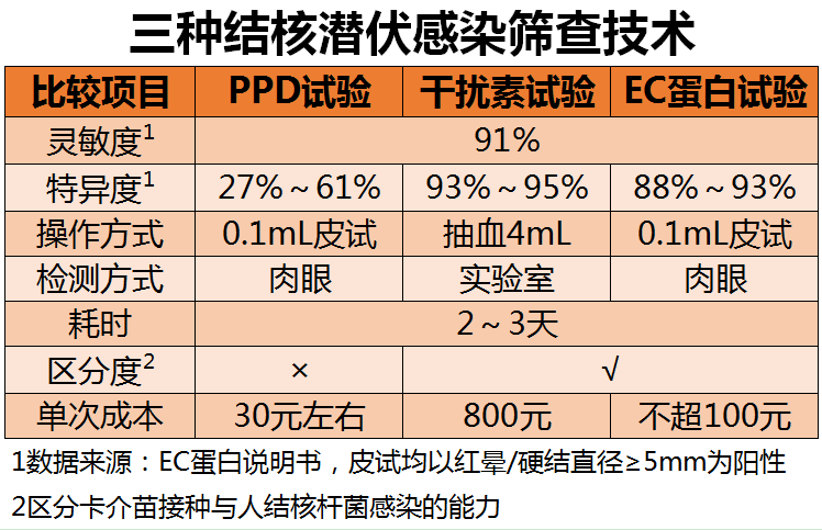 從操作上來説,EC蛋白試驗和PPD試驗一模一樣,皮試注射0.1mL後2-3天肉眼觀察結果即可,比抽血送實驗室檢測的干擾素試驗方便多了。