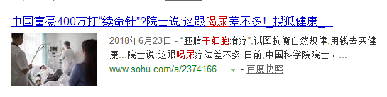 此前有專家稱幹細胞療法和喝尿療法差不錯