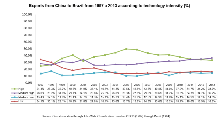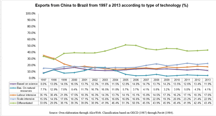 2008年,面對國際金融危機,中國通過對十個工業部門(包括紡織品、汽車、信息技術、石油化工和物流)實行減税和融資刺激,引導生產向國內市場和高附加值活動的方向調整,這是基於對基礎設施投資的巨大激勵,結合靈活的貨幣政策和高價值匯率,以及與促進科學技術和工業向高附加值過程升級有關的措施完成的(RED南方共同市場,2011年)。