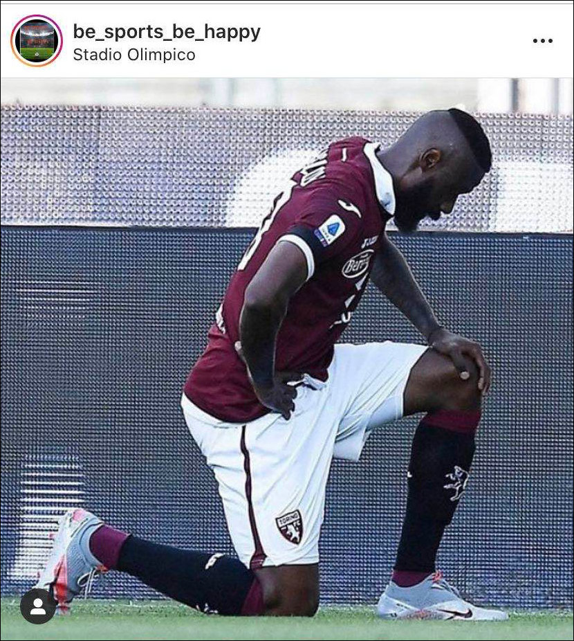 當地時間週六(20日),都靈喀麥隆國腳尼古拉斯·恩庫魯在1:1戰平帕爾馬的比賽中攻入首球。他在慶祝時單膝跪地,告慰同胞弗洛伊德,並表達對種族歧視無聲的抗議。