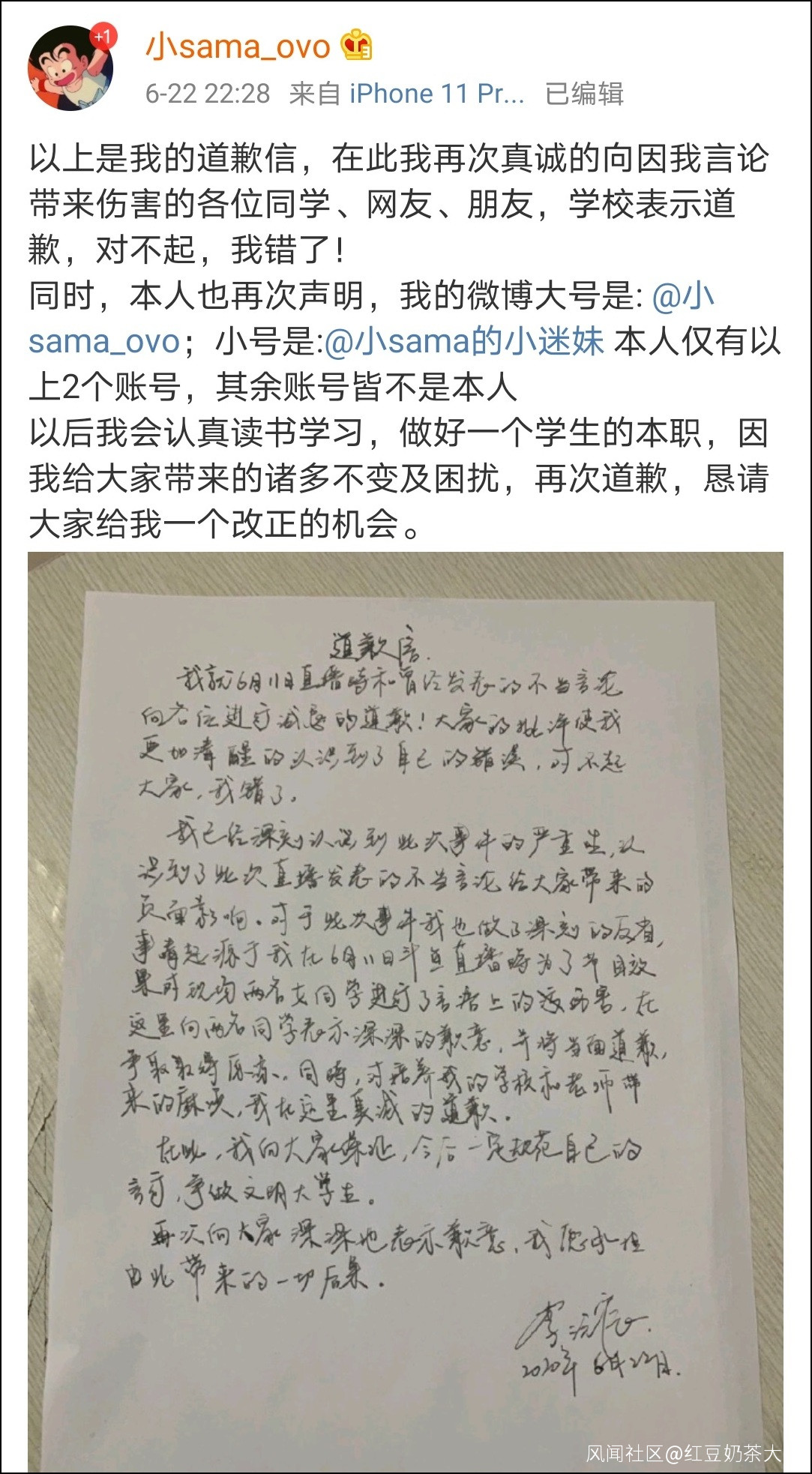 因為早前一天的道歉微博中,他提到了自己只有兩個微博賬號:@小sama_ovo 和@小sama的小迷妹。