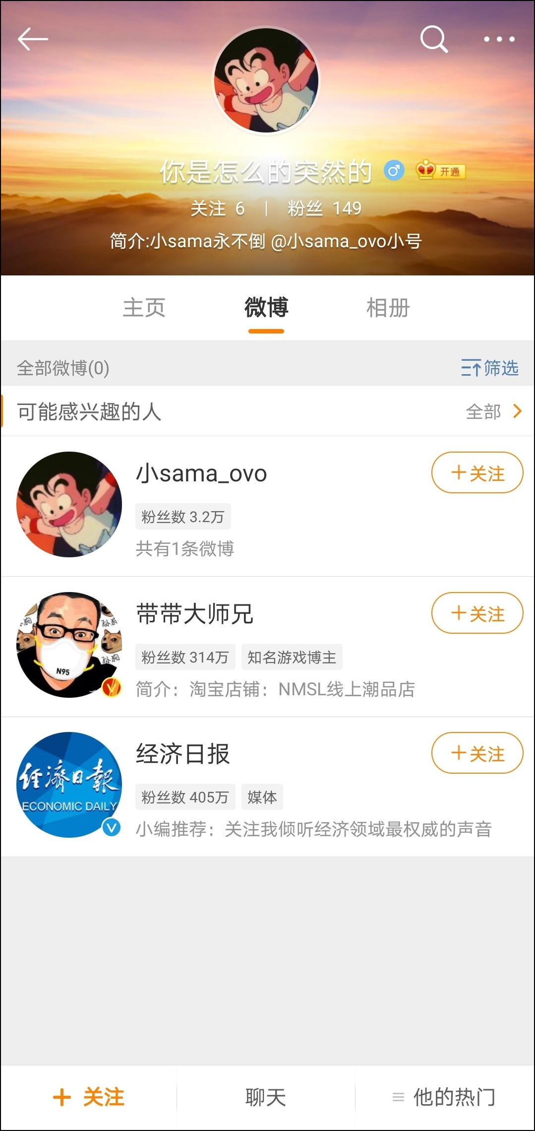 目前,@你是怎麼的突然的 又刪光了所有的微博。