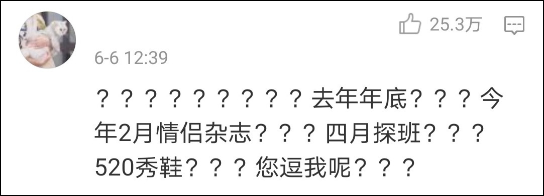 很多網友也對去年年底處於單身狀態的説法提出質疑,因為今年以來兩人還合體參加了很多商業活動。難道説,早已分手的兩人為了商業利益,還繼續欺騙觀眾秀恩愛?