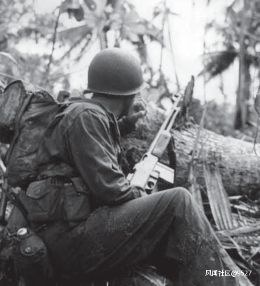 1943年11月,在馬金環礁的第165步兵隊的一名BAR槍手。在太平洋茂密的森林叢林中,BAR的穿透力被高度重視。