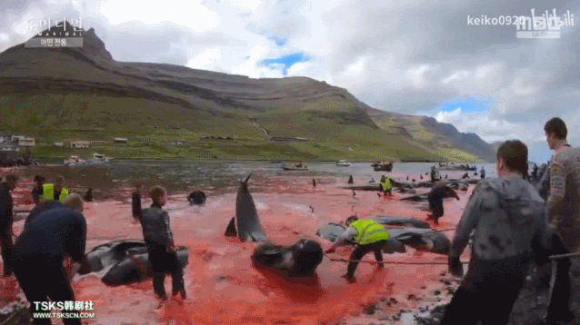 它們的頭上被叉上魚叉,它們眼睜睜看着同伴死去,卻也只能在悲鳴中被拖上岸。