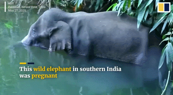 一隻懷孕的15歲野生大象,在水裏整整站了四天,不肯離去。