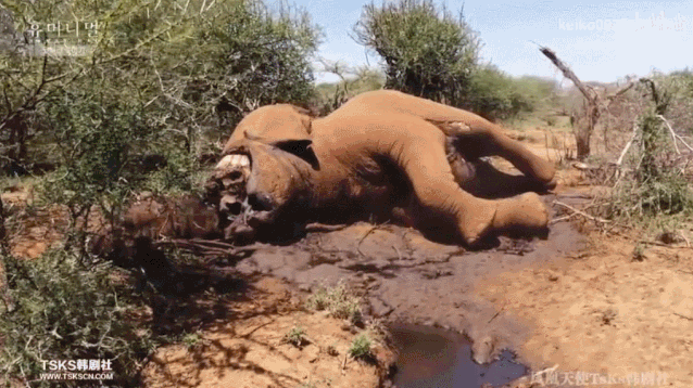 犀牛在醒來後只能在痛苦中不斷在地上打滾,哀嚎。