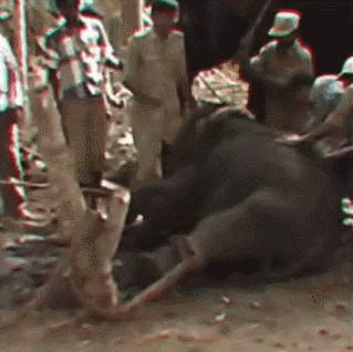 身受重傷又飢腸轆轆,她無法再吞嚥下任何食物。人們派出兩頭圈養的大象想把她帶出河裏,她拒絕了。