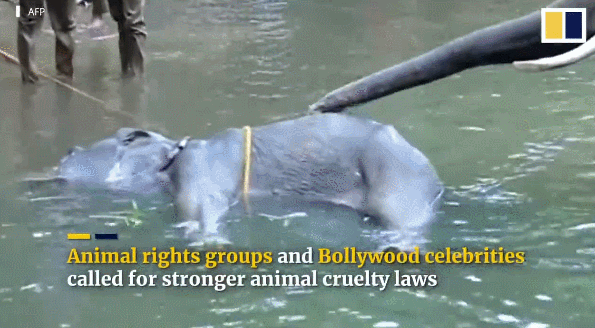 四天後,在人們的注視下,她默默倒在了水中,只有身邊負責救援的大象,一遍遍地用鼻子撫摸她的身體。